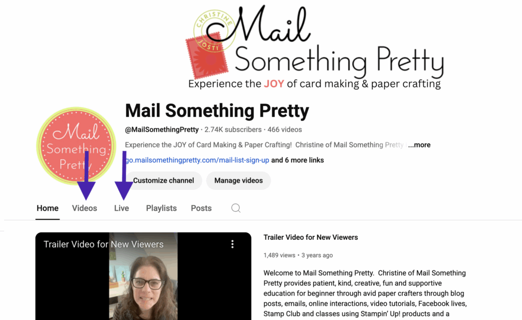 Please subscribe to my YouTube channel so you’ll be notified when I go live and when I upload a pre-recorded video: https://mailsomethingpretty.com/YouTube