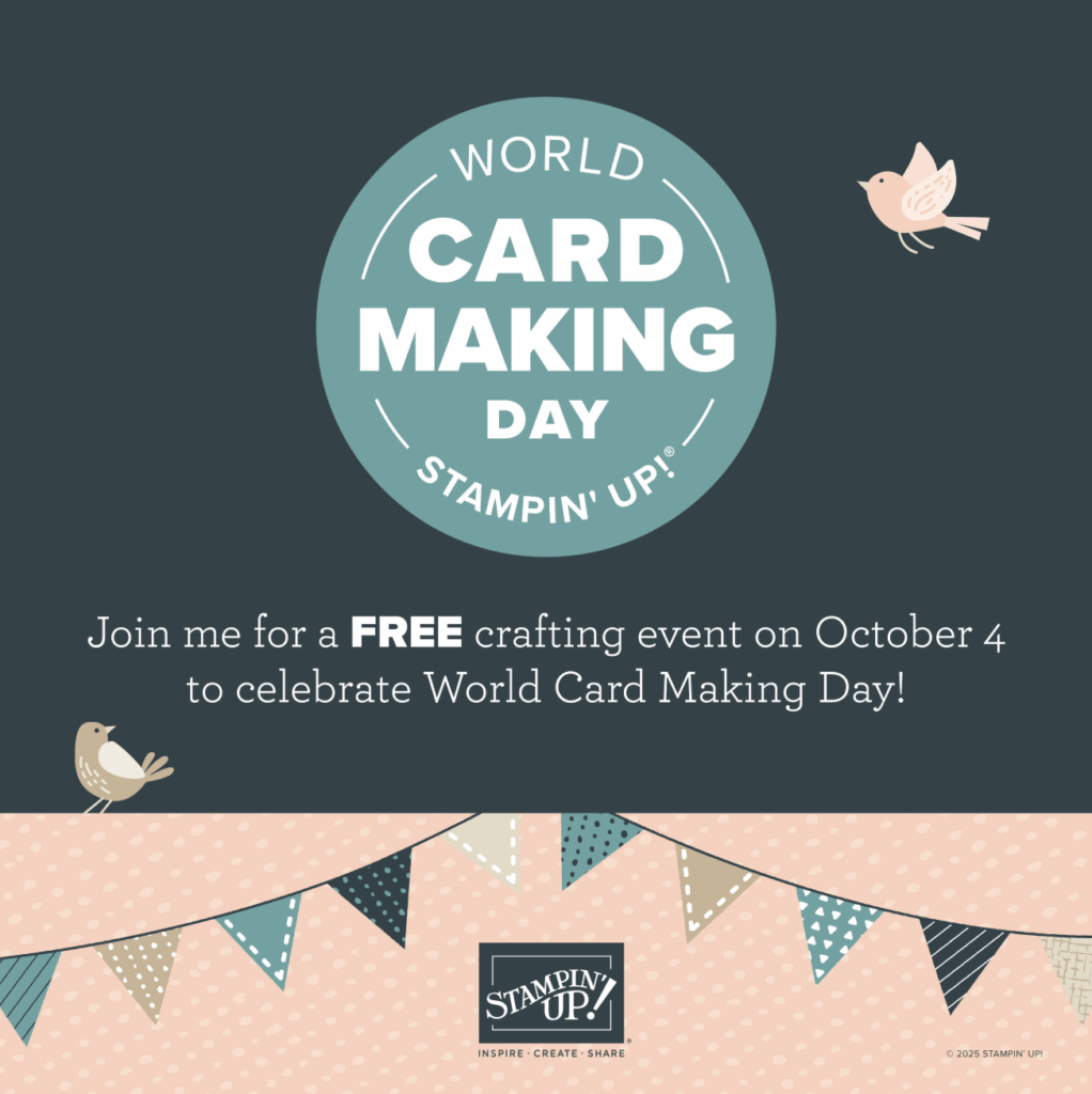 Looking for a fun project for this year’s World Card Making Day? Stampin’ Up! is hosting a one hour, free virtual event that anyone can attend. All you need to do is register (and you’ll even get a small gift after the event).
